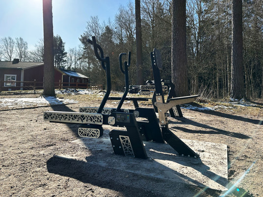 Utegymmet täcker in alla stora muskelgrupper på en ganska liten yta, med både justerbara träningsmaskiner och en mångsidig träningsställning. De justerbara vikterna gör att utegymmet passar en bred målgrupp.