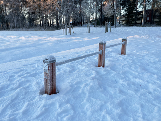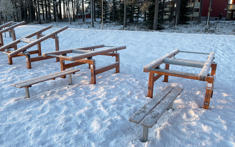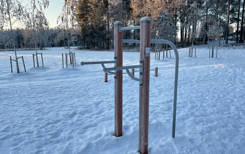 I norra Sverige är det kallt och snö under många månader på året. Men det är inget hinder för att fortsätta träna utomhus. Så länge du är rätt klädd och lyssnar på kroppens signaler kan ett pass på utegymmet ge dig ny härlig energi. Det viktiga dagsljuset och närheten till naturen motverkar vintertrötthet och gör att du klarar skola, jobb och vardag på ett bättre sätt.