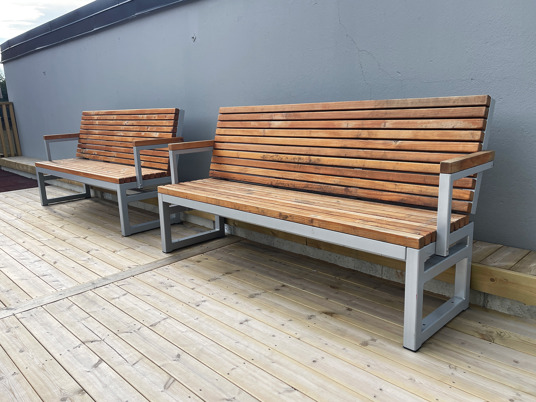 Här har man kombinerat en lekplats med ett utegym för seniorer på samma ställe. Smart och platsbesparande! Och vem säger att bara seniorer får träna på utegymmet? Inte vi.