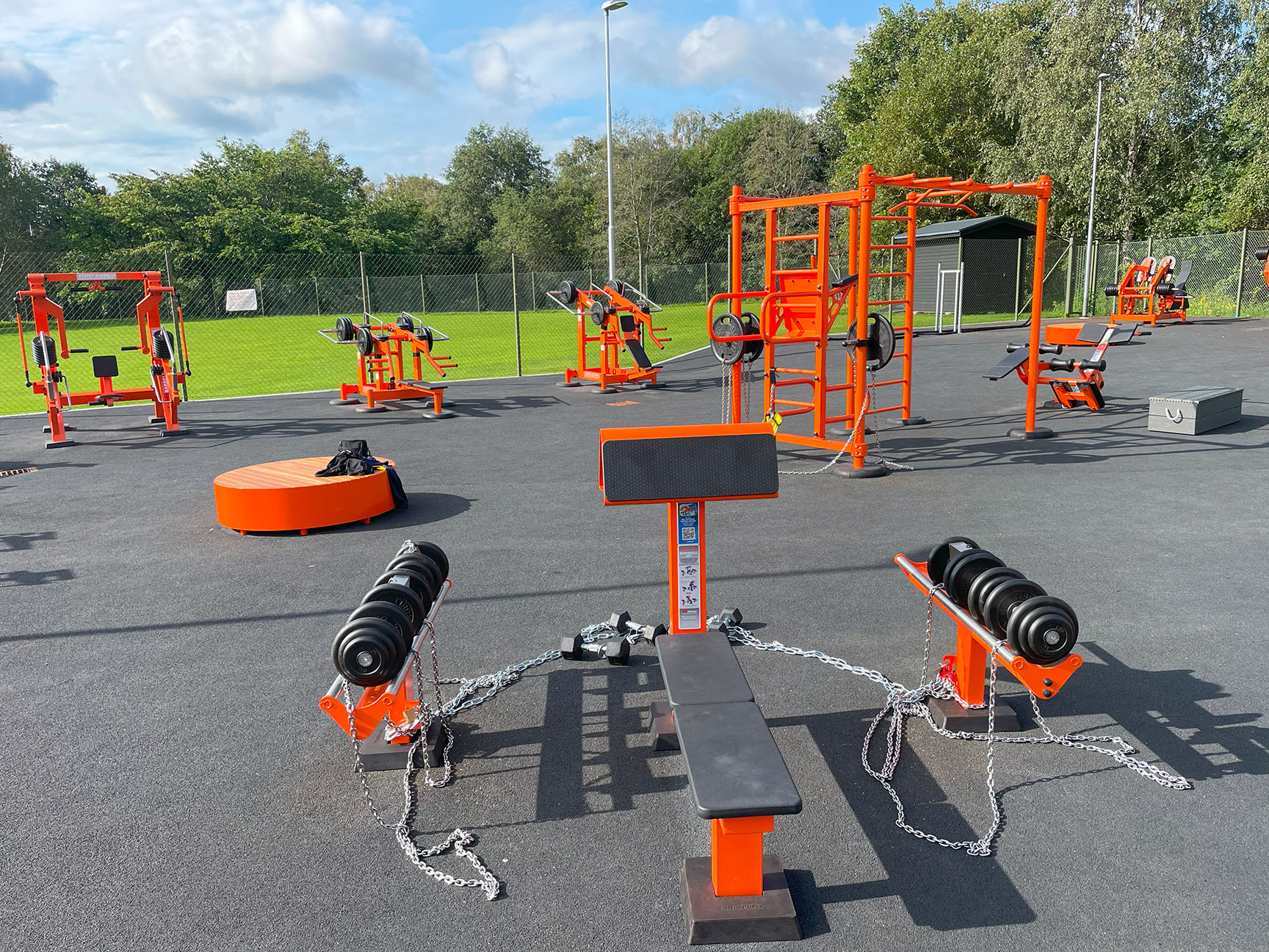 Från outnyttjad grönyta till komplett utegym med 18 olika träningsstationer. Ett otroligt uppsving på en sedan tidigare tom yta. Utegymmet ligger så centralt att det är många som passerar och enkelt kan hoppa in och köra ett pass när andan faller på.