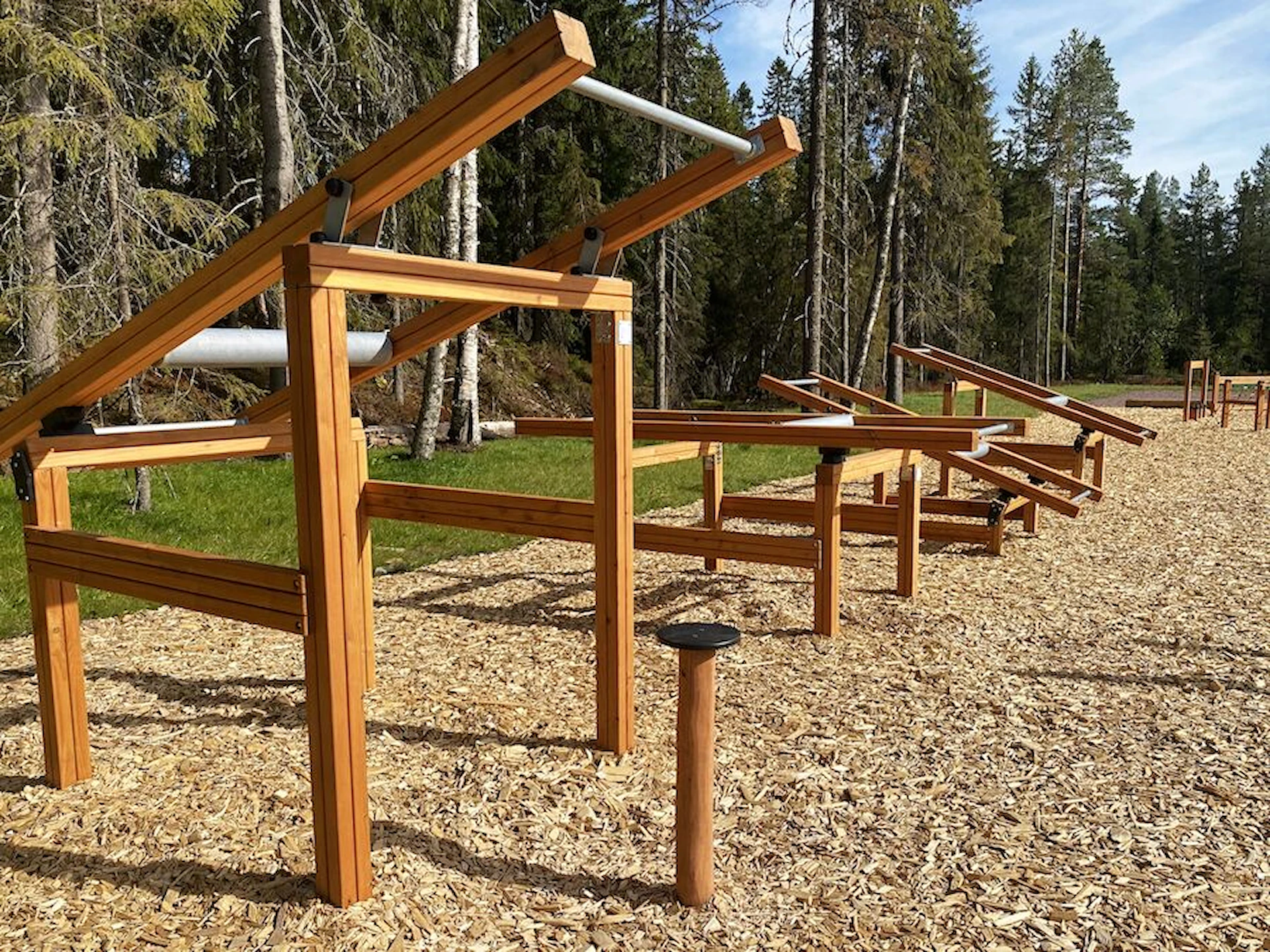 Däremot har vi många produkter utan trä som kan levereras i stort sett omgående, exempelvis Boulder Rocks, gungor, mål, basket, bordtennis, fristående rutschar, klätternät, studsmattor, bänkbord med mera.
