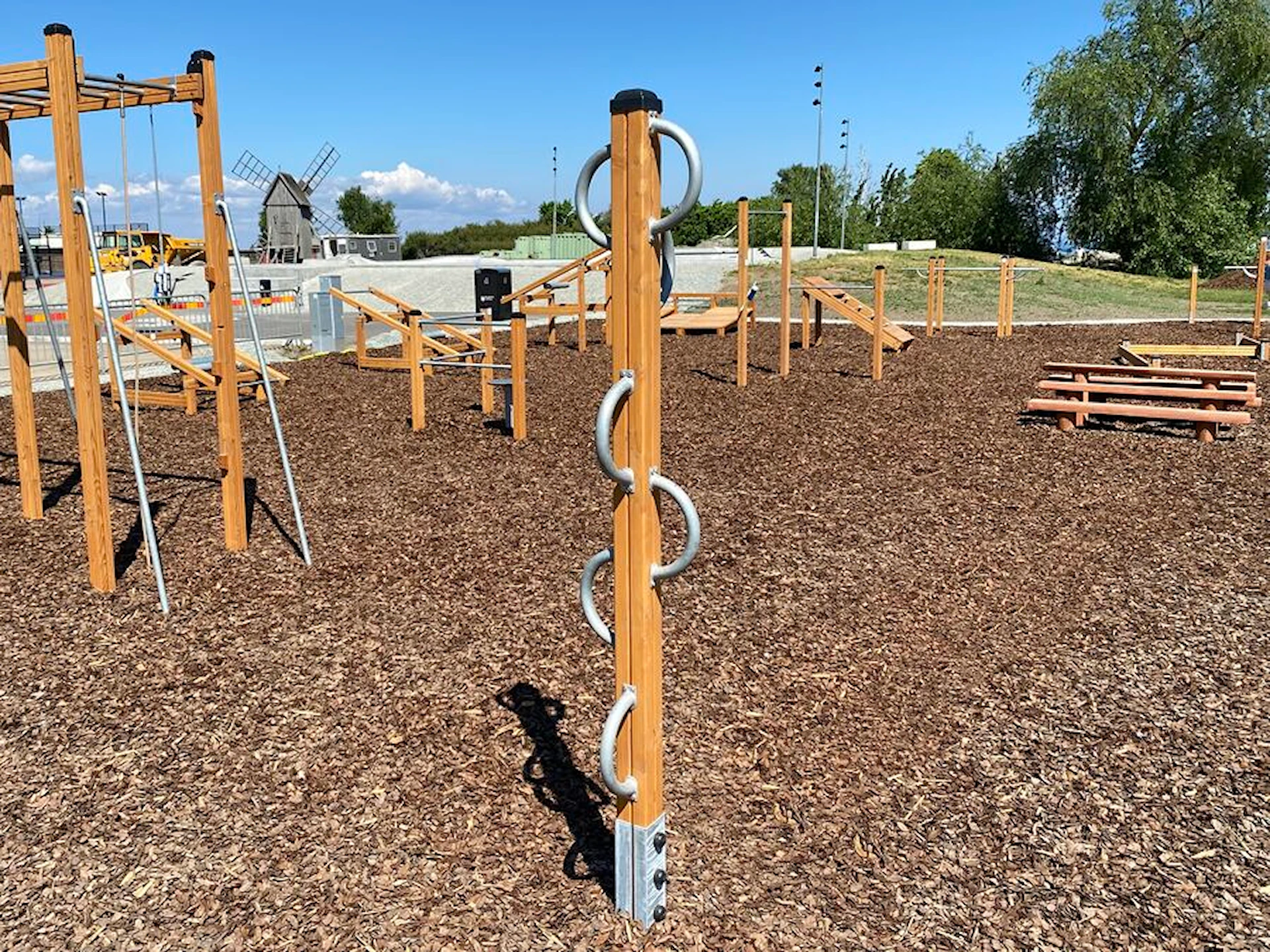 Däremot har vi många produkter utan trä som kan levereras i stort sett omgående, exempelvis Boulder Rocks, gungor, mål, basket, bordtennis, fristående rutschar, klätternät, studsmattor, bänkbord med mera.